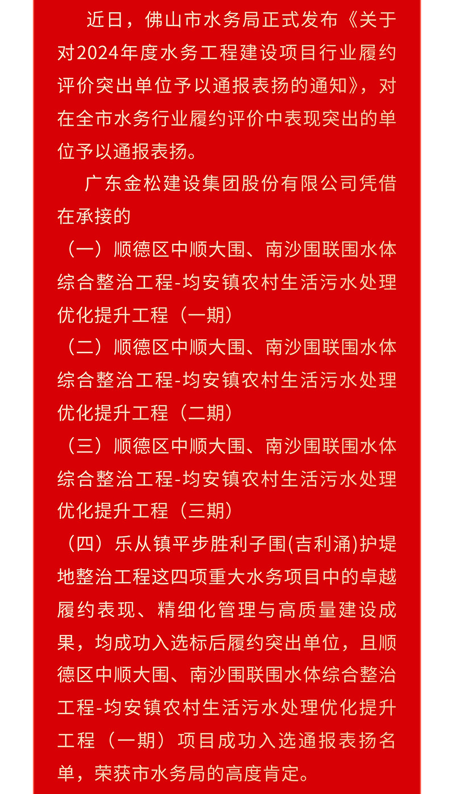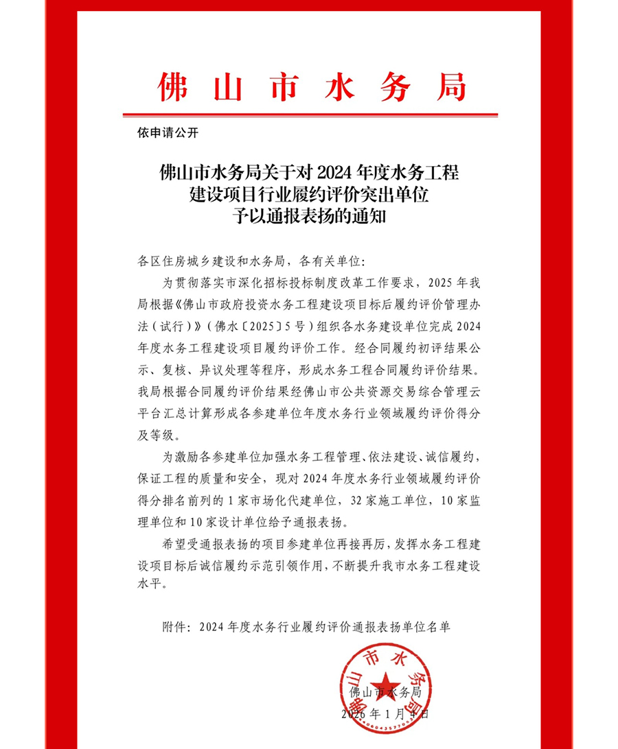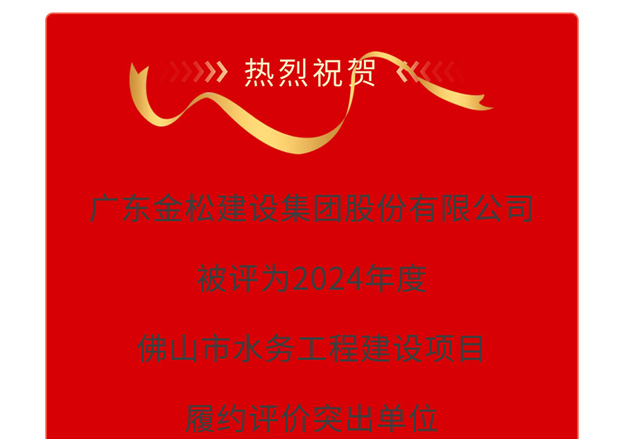 喜报 | 热烈祝贺广东金松建设集团被评为2024年度佛山市水务工程建设项目履约评价突出单位